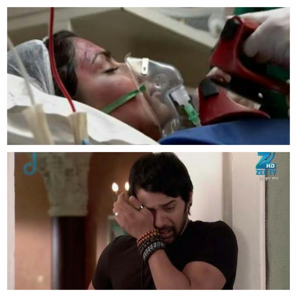 He was fully wjt tears…he could nit see his fuggy in pqin…all rushed tyr…he carried her..purab took the car..he lied her on hus lap in backseat and started..othr came in anothr car…
