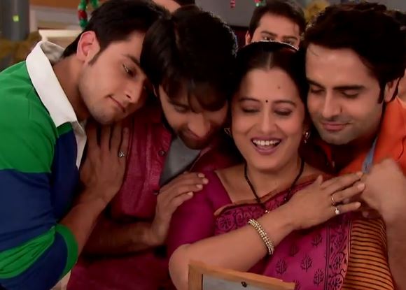 Pratima bets him, and everyone smile, and then the brothers together hugged their mother.