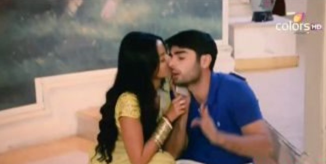 Sanskar place his lips on her and kissed softly. Sanskar caress her bare waist under her saree and swara’s hands crawl in his hands pulling him more closer. They broke their passionate kiss when they were out of breathe.