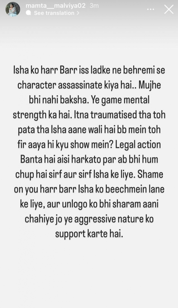 In a concerning development, Isha Malviya’s mother took to Instagram in support of her daughter, condemning Abhishek’s repeated character attacks. Her post highlighted the distress caused by the continuous vilification and hinted at potential legal action against such behavior. It emphasized the mental fortitude required for the game, questioning why someone traumatized would enter the show, expressing concern solely for Isha’s well-being.