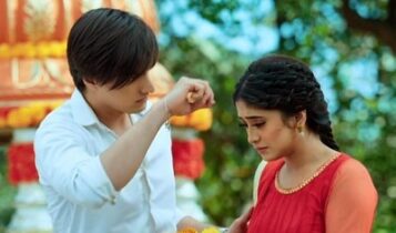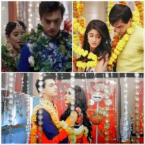 Swarna gets Kaira while Surekha gets Kairav. Naira and Kartik start to walk towards the opposite direction when the flower decorations fall on them,
