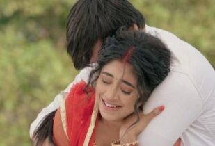 Kartik takes the sindoor from nearby place and fills her hairline. Naira hugs him tight.
