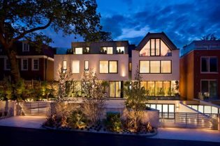 Its night and a big mansion is shown shown..