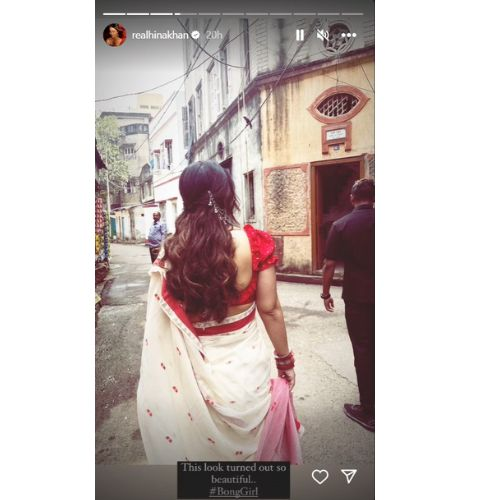 Hina Khan also shares solo behind-the-scenes pictures from the shoot, showcasing her stunning attire and hair, captioning one image as, “This look turned out so beautiful. #BongGirl.”