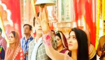 He moves his hand away and she realises it and takes her hand too. Kartik and Ridhimaa pray together. Naira is unable to bear it when Ridhimaa does his tilak. She decides to move away but the crowd pushes Kartik and Naira towards each other. And the tilak in his forehead fills her maang.