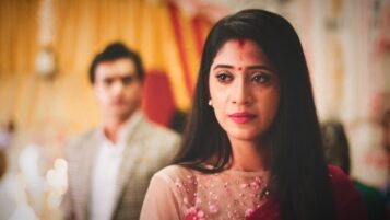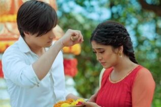He moves his hand away and she realises it and takes her hand too. Kartik and Ridhimaa pray together. Naira is unable to bear it when Ridhimaa does his tilak. She decides to move away but the crowd pushes Kartik and Naira towards each other. And the tilak in his forehead fills her maang.