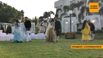 He went to Gauri’s room and found it slightly open, he looked through the space and saw her trying out the couple dance steps by herself with her eyes closed feeling the music. With a little mischief in his mind, he slowly went near her without making her realise. Then, holding her hand, he takes his position as her partner.