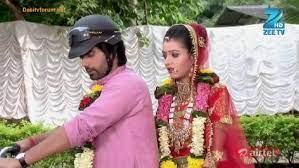 At a point Shivani started again crying. Raghu stops the bike. he finds the chunari has fell down at road. Raghu picked it and covered her head with the Chunari.