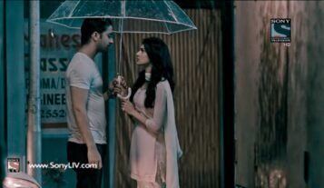 Sonakshi comes out of the umbrella and opened her mouth to drink rain water. Dev looks at her derisively. Sonakshi asked Dev to do the same. Dev too opened his mouth and swallowed the rain water.