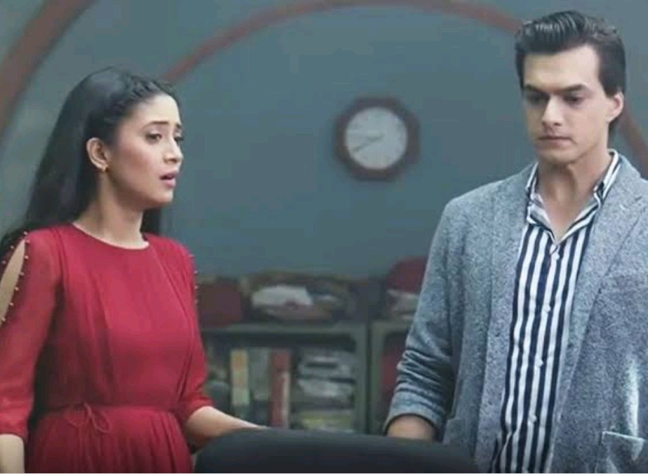 Kartik forwards his hand for the handshake while naira hesitantly shakes hands with him..