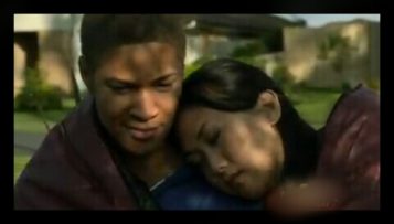 Emily turns back ” Jaden ” She Smiles and hugs him